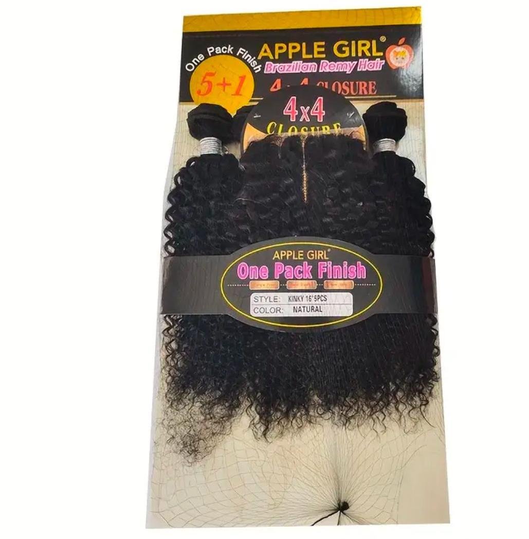 Cheveux humains Brésiliens frisés crépus bouclées et frisés 5+1 paquets avec fermeture en dentelle 4×4 noir naturel 14 pouces.