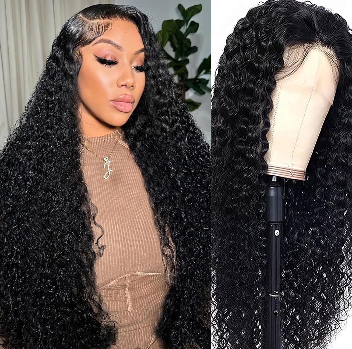 Perruque lace front wigs Deep wave 20 pouces,cheveux humains 13×4 HD transparent,perruque frontal deep wave bouclées 200% densité pre-épilées avec des cheveux de bébé.